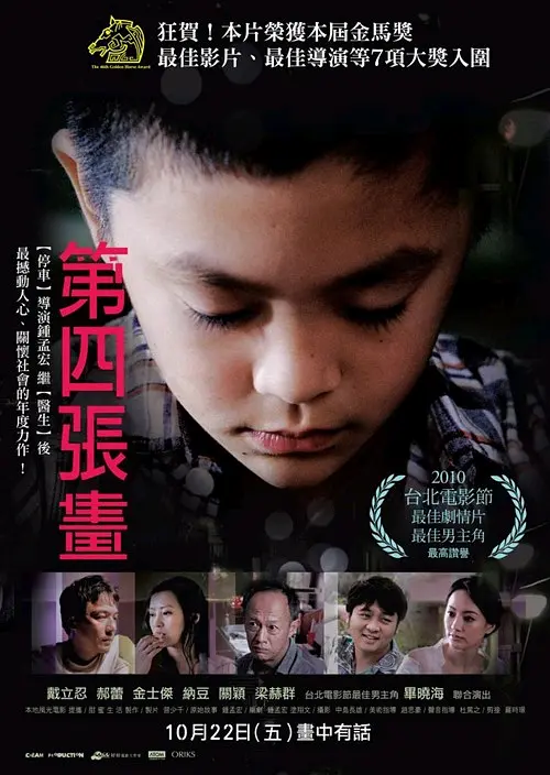 男童朱云翔(毕晓海 饰)的父亲过世,生活无人照顾,来自大陆的老校工张先生(金世杰 饰)外冷内热,在朱云翔生母吴春兰(郝蕾 饰)到来前照顾了小翔一段时间。吴春兰十几年前由大陆赴台,短暂的迷梦破灭后又经历了牢狱之灾,如今栖身于风尘场所。靠摆摊维持生活的继父(戴立忍 饰)被恨意所填充,对小翔的到来颇多怨气。幸好小翔结识了当地的小混混手枪仔(纳豆 饰),手枪仔用偷来的轻骑带小翔兜风,配合手枪仔盗窃和强抢小学生之类虽然很不正当,可也给小翔枯燥的生活增添了几许刺激。如非必要,小翔很少画画,可也给父亲和手枪仔分别画了一幅,第三幅画,是关于小翔梦中的哥哥,而失踪三年的哥哥实际为继父所害。小翔的第四张画,会画下什么内容?收起