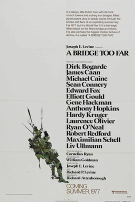 欧战尾声,盟军上下逐渐弥漫着乐观的情绪。为了提前结束战争,各地盟军将领认为只要一番猛攻,便可提早直捣柏林结束战争。于是轻率地将大批伞兵空投在德军营地背后,去攻占阿纳姆的那座横跨莱茵河的大桥。不料遭遇德军的顽强抵抗,盟军付出了伤亡惨重的代价。这场堪称二战中最具戏剧性的战役,终以盟军的惨痛失败而告终。  由奥斯卡金像奖得奖导演理查德·阿滕伯勒执导的战争巨片《遥远的桥》,根据科尼利厄斯·瑞恩的同名小说改编而成。影片表现和讴歌了盟军在二战中浴血奋战的斗争精神,被誉为电影史上的超级战争巨片。本片的明星阵容空前强大,聚集了诸如詹姆斯·卡恩、迈克尔·凯恩、肖恩·康纳利、罗伯特·雷德福、安东尼·霍普金斯等数国的数十位明星。本片荣获1978年第31届英国电影和电视艺术学院奖最佳摄影、最佳男配角、最佳原声等多项大奖与提名。收起